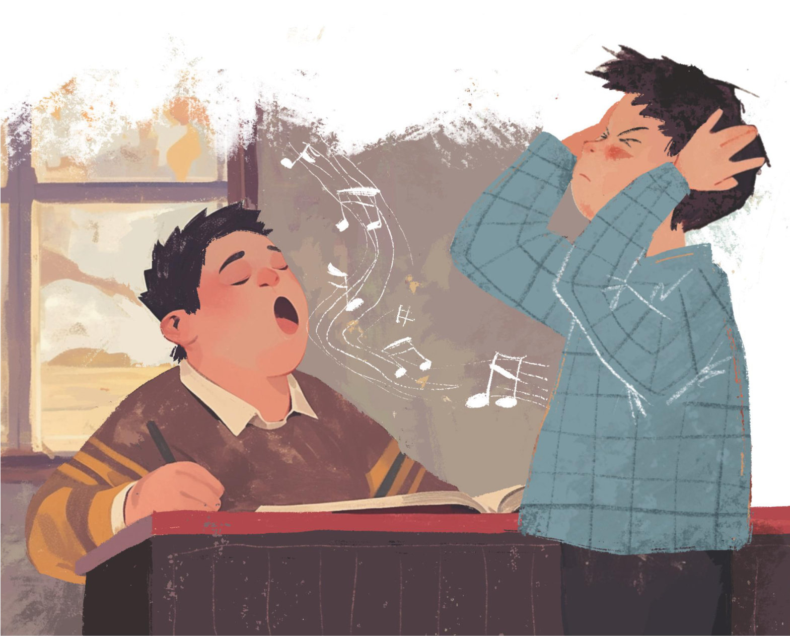 1 深秋的午后,天蓝得像海,方一丞背靠树桩,将一根狗尾草放在鼻尖来回摩挲。远处,又矮又胖的吴子睿正朝他奔来,像一个滚动的大南瓜。 “别难过啦!老…老天是 公平的!”终于,吴子睿气喘吁 吁地停了下来,“尽管你五音不 全,起码体育强呀,不像我一无 是处。" “你是说,音乐老师罚我唱歌的事?”方一丞有些纳闷,“谁说我难过了?我跑那么快,只是想早点来操场。老天的确是公平的,上完音乐课就是体育课,这叫