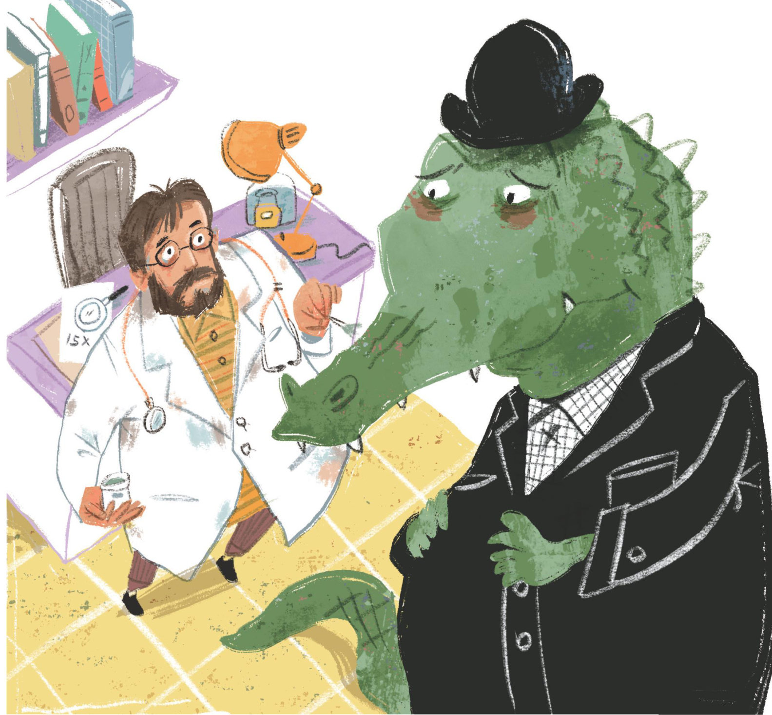 1.鳄鱼受伤了,请洛克医生帮忙 天气凉了,动物们的嘴巴有些干裂。好在洛克医生总有办法。 洛克医生制作了大量中草药润唇膏,效果好极了,只要仔仔细细地涂一次,嘴巴就舒服多啦。 一传十,十传百,大家都来洛克医 生这儿涂润唇膏。 涂润唇膏这种事,当然是自己涂比较顺手。大家嘅着嘴巴,给自己涂完润唇膏后,再让洛克医生检查。如果谁没涂好,洛克医生就会帮忙涂完美。 过了几天,黑羊的嘴巴、山兔的嘴巴