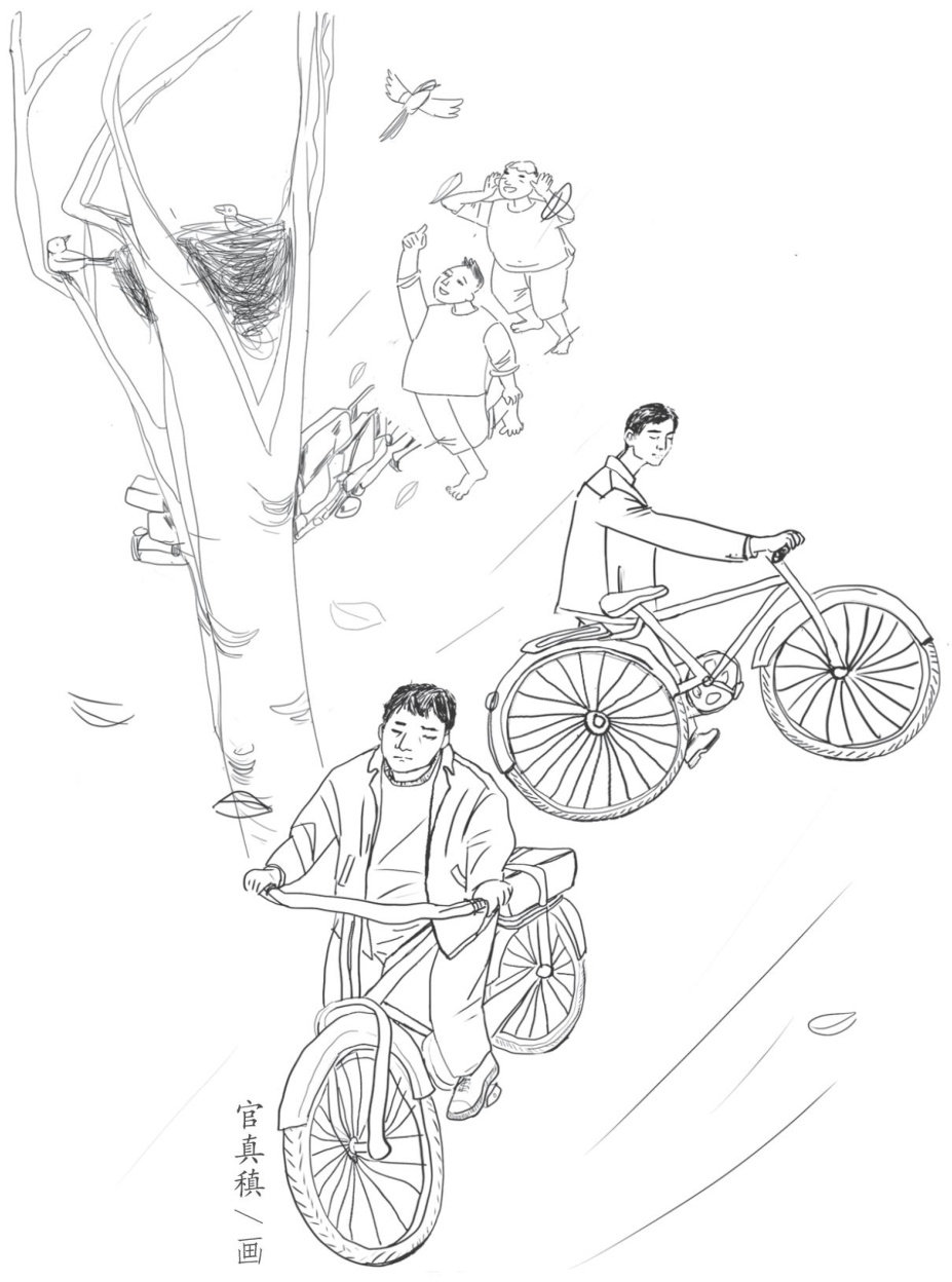 喜山家的门口有棵白杨树,银白的树干,硕大的叶子。太阳正亮的时候,一树叶子泛着亮花花的油光。这树还挺嫩,并不粗,却长得很高,喜鹊就在上面做了窝。大喜鹊在窝里孵出小喜鹊以后,高兴得没治,整天叫,小喜鹊就也跟着叫了。大喜鹊和小喜鹊叫成一团叫得一树乱喳喳的时候,喜山爹用笞帚苗剔着牙从家里走出来,仰了脸看树上的喜鹊窝,慢慢地就把脸上看出得意的笑容来。 村里不是没有别的树,还有槐树楸树什么的。喜鹊窝却只