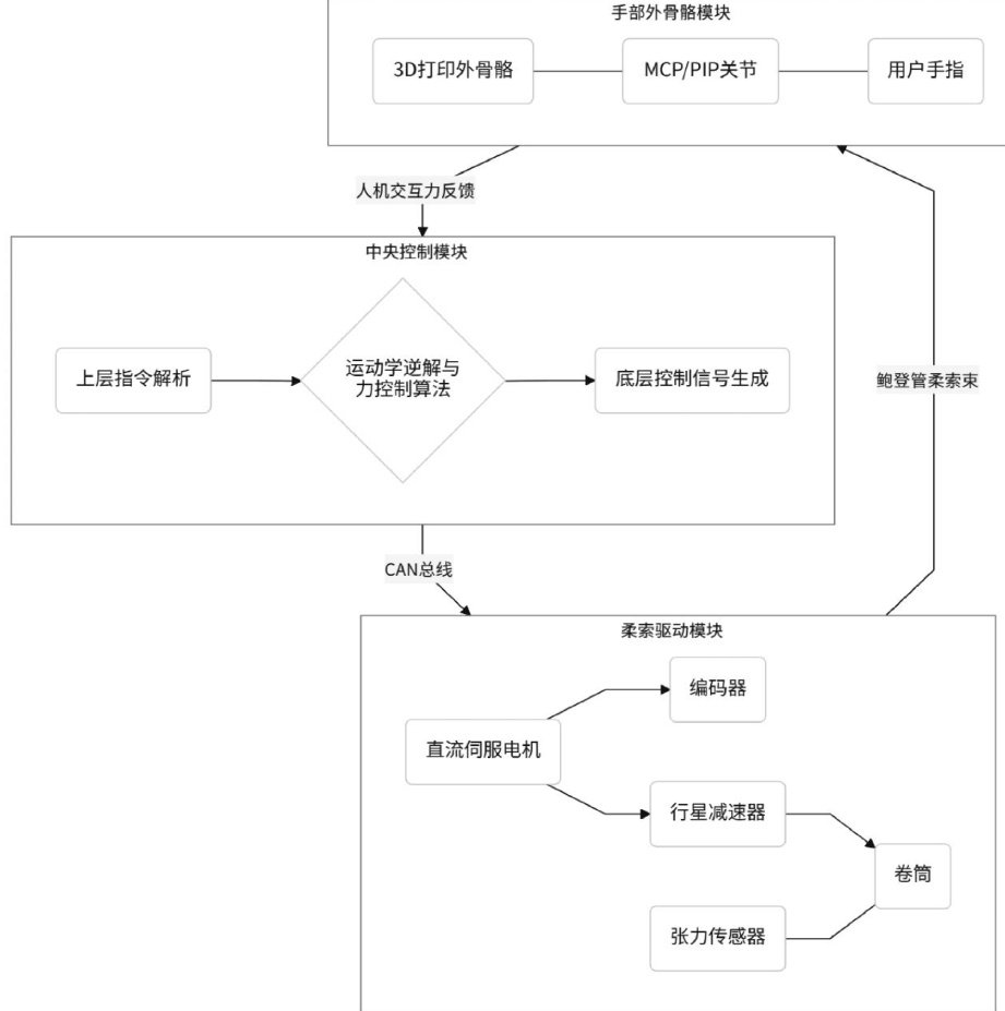 摘要:针对现有手部康复机器人存在的佩戴不适、控制精度不足及运动自由度受限等问题,文章提出一种基于柔索驱动的轻量化手部康复机器人系统设计方案。通过远端作动理念与模块化外骨骼结构的结合,系统实现了四指掌指关节(Metacarpophalangeal,MCP)与近端指间关节(ProximalInterphalangeal,PIP)的双向运动控制。实验验证结果表明,系统在关节角度跟踪误差、动态响应时间及恒定力矩波动等关键指标上表现优异,能够有效适应不同康复场景需求。该研究为手部功能障碍患者提供了高精度、低惯量且可穿戴的康复辅助解决方案。