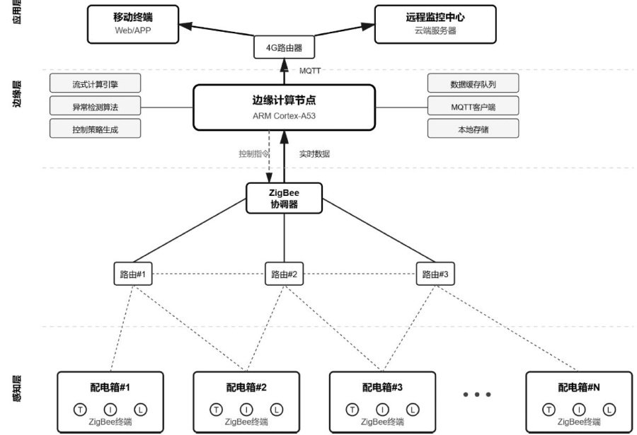 摘要:针对电力工地临时配电箱监控过程中存在的响应滞后、数据传输延迟以及网络稳定性欠佳等问题,文章构建了融合 ZigBee 技术与边缘计算的智能监控系统。借助紫蜂组网达成配电箱状态的感知,依托边缘节点就近处理实现故障的快速响应,进而实现温度异常报警、负载平衡控制、漏电精准定位以及能耗异常分析等功能。系统测试结果显示,该方案在实时性、准确性和可靠性方面均有优异表现,切实提高了工地用电安全管理水平。