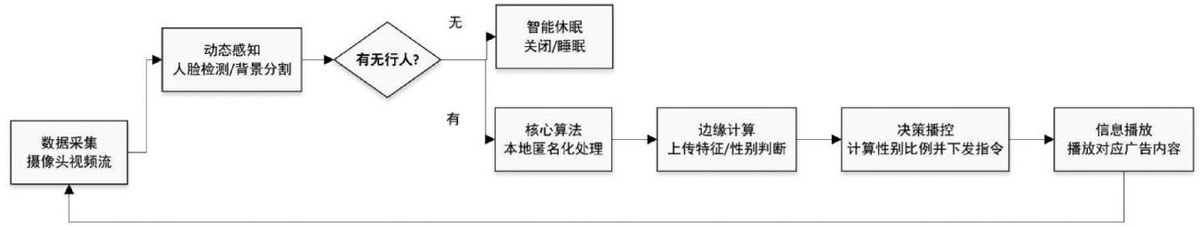 摘要:为应对传统广告播控系统精准度低、能耗高及隐私泄露风险等问题,文章研发了基于边缘智能的性别识别播控系统。该系统采用“终端-边缘-云”三级分布式架构,终端负责视频采集、轻量级人脸检测与数据匿名化,边缘层进行高精度性别识别与群体比例分析,云平台实现管理。文章还提出了CNN-Transformer双分支混合模型,结合ArcFace损失函数与模型量化剪枝技术,在Jetson Nano 边缘设备上识别和处理。通过集成联邦学习与差分隐私机制,构建“数据不离端”的隐私保护方案。实测结果表明:该系统解决了复杂场景下高精度识别、实时响应、隐私安全与节能降耗间的平衡问题,为智能播控系统提供了可行的技术路径。