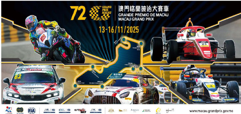 澳門年度國際體壇盛事—“第72屆澳門格蘭披治大賽車”於 11 月揭開戰幔,將舉行七項精彩賽事:澳門格蘭披治大賽—國際汽聯FR世界盃、澳門GT盃—國際汽聯GT世界盃、澳門東望洋大赛—Kumho國際汽聯TCR世界巡迴賽澳門站、澳門四級方程式大赛一國際汽聯四級方程式世界盃、澳門格蘭披治電單車一第五十七屆大賽、大灣區GT盃(GT4)及澳門路車挑戰賽。 眾多世界頂級GT賽車手將會角逐2025年澳門GT盃—