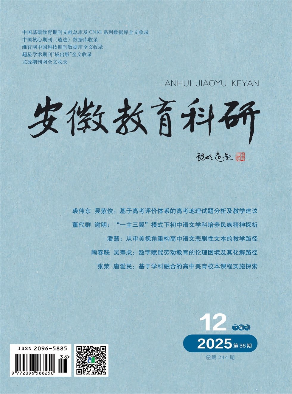《安徽教育科研》由安徽出版集团主管,安徽教育出版社主办,为国内公开发行的教育类学术期刊。杂志以“反映教育热点问题,传播教学先进理念,交流教研科学成果,发现与培育人才,为教育与科研服务”的办刊宗旨,立足安徽,服务全国,致力于为广大教育工作者搭建一个展示教研成果、交流经验、合作共进的平台。