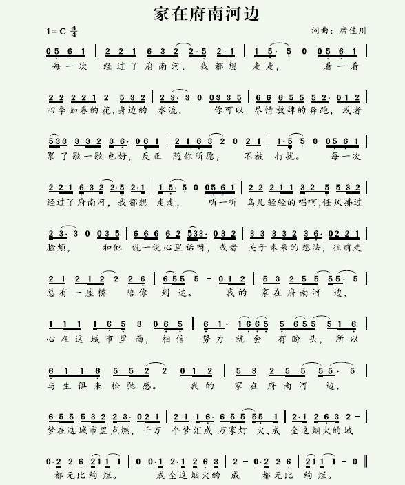 创作《家在府南河边》这首歌曲,并不是一个宏大的计划,而是一个在脑海中浮现了很多次的念头。府南河对我来说,并不是一个单纯的景点,也不仅是被修辞过的城市符号,它更像一条静静流淌在我生命里的时间线——某一天我突然意识到,这些年自己的生活、心境、身份的变化,竟始终有它波光水影的相伴。 最初的创作冲动,源于一种近乎本能的感受:每一次经过府南河,我都想停下来走一走。不是为了锻炼,不是为了打卡,只是想让脚步慢