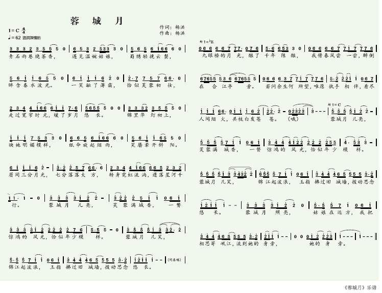 在成都生活与创作二十余年,我不断思考城市主题音乐创作的可能性。随着时间的推移,个人经验与情感的积累,使我对成都的理解愈发深入且立体。《蓉城月》的创作,正是在这样的背景下产生的。作为一名“新成都人”,我并非出生于这座城市,却在这里完成了人生与创作的重要阶段。也正因如此,在成都市中青年文艺家创作扶持项目的支持下,我选择以一首气质温润、表达含蓄的作品,回应这座城市长期以来给予我的滋养与启发。 成都题材