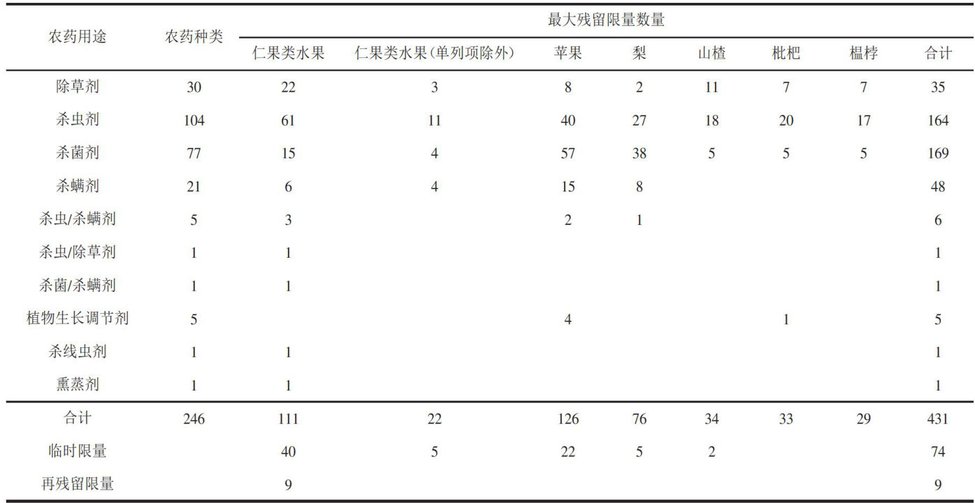 摘要:本文以现行有效的《食品安全国家标准 食品中农药最大残留限量》(GB2763—2021)为依据,以苹果、梨、山楂、枇杷和温梓等重要仁果类水果为研究对象,依据农药用途进行分类,全面归纳了GB2763—2021中仁果类水果的农药最大残留限量(maximum residue limits,MRLs)、每日允许摄入量(acceptable daily intake,ADI)及检测方法,旨在助力相关从业者更高效地运用该标准。此外,本文还提出了我国仁果类水果农药最大残留限量标准的改进建议,对于我国仁果类水果农药最大残留限量标准的制定与修订工作具有重要意义,有助于保障仁果类水果的食用安全,推动产业的健康发展。