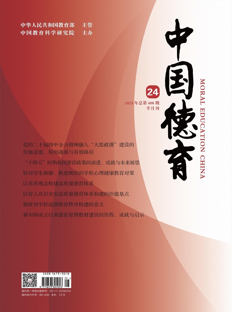 《中国德育》(Moral Education China,MEC)由中华人民共和国教育部主管、中国教育科学研究院主办,融思想性、学术性、新闻性、故事性于一体。