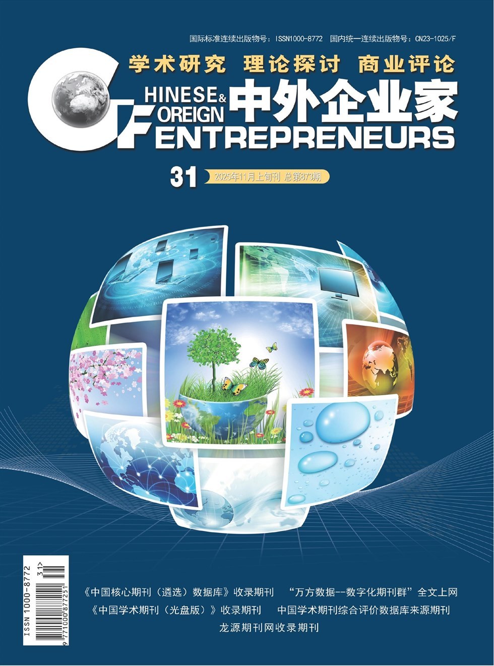 社会科学 社科学术 25 12 《中外企业家》杂志是1984年10月全国第一家创刊的国内外公开发行的企业家类经济月刊,由黑龙江出版传媒股份有限公司主管,黑龙江人民出版社有限公司主办。本刊在国内外有广泛的覆盖面,时效性强 是献给企业经营者、管理者、经济工作者的刊物。在全国统一标准评刊中,被评为一级期刊。