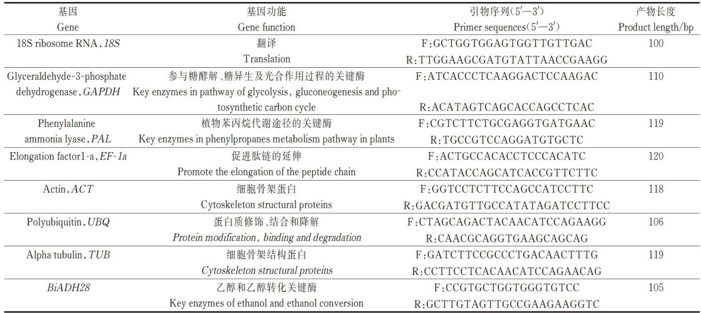 摘要:荧光定量PCR技术因其高灵敏度、强特异性、操作简洁等优点,是基因表达分析的重要工具。为筛选出在非生物胁迫下白羊草(Bothriochloaischaemum)实时荧光定量PCR(qRT-PCR)适用的内参基因,本研究基于前期的转录组数据,选取了7个候选内参基因( ?18S,GAPDH,PAL,EF-1a,ACT,UBQ 和 TUB) 。在盐胁迫、干旱胁迫和冷胁迫下,采用qRT-PCR技术检测了白羊草叶片和根系中这7个候选基因的 Ct 值,并使用比较 ΔCt 法和4个分析软件(geNorm,NormFinder,BestKeeper和RefFinder)对7个候选内参基因进行稳定性排序。结果表明,不同胁迫下、不同组织中的最佳内参基因有所不同。干旱胁迫下,叶片中最佳内参基因为ACT和 PAL ,根系中为18S和 GAPDH ;盐胁迫下,叶片中最佳内参基因为 PAL 和 EF–1a ,根系中为TUB和UBQ;冷胁迫下,叶片中最佳内参基因为 ACT 和GAPDH,根系中为 PAL 和 ACT 最后,利用筛选出的内参基因对耐盐相关基因BiADH28的表达进行了验证,结果表明内参基因筛选结果可靠。本研究为白羊草在非生物胁迫条件下的基因表达分析提供了坚实的基础。