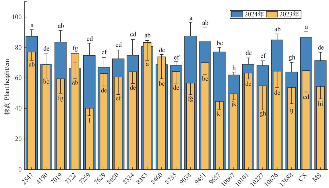 摘要:饲用燕麦(Auena satiruaL.)在草地畜牧业和生态可持续发展中具有重要作用,但其优良性状的遗传机制尚不明确。本研究通过对69份燕麦材料进行基因组重测序,筛选出47993754个SNP位点,并对9个农艺性状进行全基因组关联分析(GWAS),共鉴定到21O个显著关联的SNP位点,分布于各染色体,其中3C染色体分布最多,并挖掘出120个候选基因。分析发现,株高性状关联到受体激酶基因(ORK45、LRK45)和E3泛素连接酶基因Atlg63170 ,其家族基因在其他物种中已被证实调控株高;剑叶长、小穗数及种子数关联到含锌指CCCH结构域的蛋白基因,该基因参与植物生长发育及胁迫响应;叶绿素含量关联到ABC转运蛋白基因 .HY5 及乙烯应答转录因子基因,均与光反应相关。进一步对16个关键候选基因的10个SNP位点进行单倍型分析,发现多数位点不同单倍型间性状差异显著。本研究为饲用燕麦遗传改良提供了重要的基因资源和理论依据。