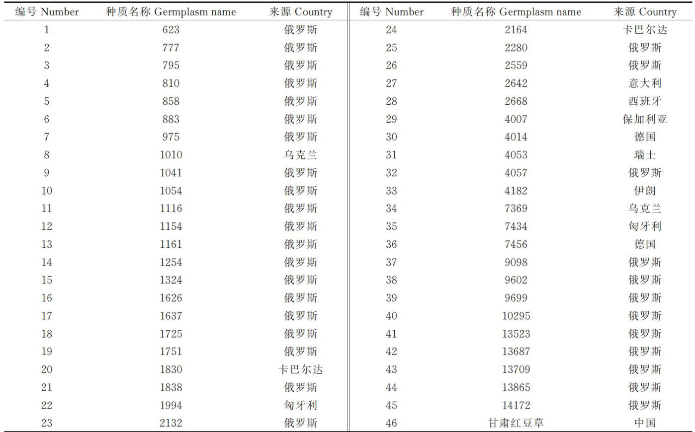 摘要:为了开发利用红豆草(Onobrychis uiciaefolia)种质资源,本研究以46份国内外红豆草种质为材料,对其主要品质指标进行了测定。通过变异系数分析、相关性分析、主成分分析、聚类分析以及综合评价等多种方法,对这些种质的品质性状进行了系统研究。结果表明:粗蛋白的变异系数为 11.64%,9,42,45 和46等4份种质的粗蛋白含量超过 25% ,种质39最高达到了 25.92% ;种质14和42具有 20% 左右的酸性洗涤纤维和低于 27% 的中性洗涤纤维;木质素的变异系数也较高,达到了 14.25% ;缩合单宁含量变化范围大,从种质21的 0.06% 到种质7的 5.74% .变异系数达到了 66.67% ,远高于其它性状的,种质19,32和7的缩合单宁含量超过了 5% ;经主成分分析和综合指标评价可知,种质14,42,33和16,属于较优异的种质。本研究结果为高粗蛋白、较低纤维、较低木质素和较高缩合单宁含量的新品种选育提供了种质材料和理论依据。