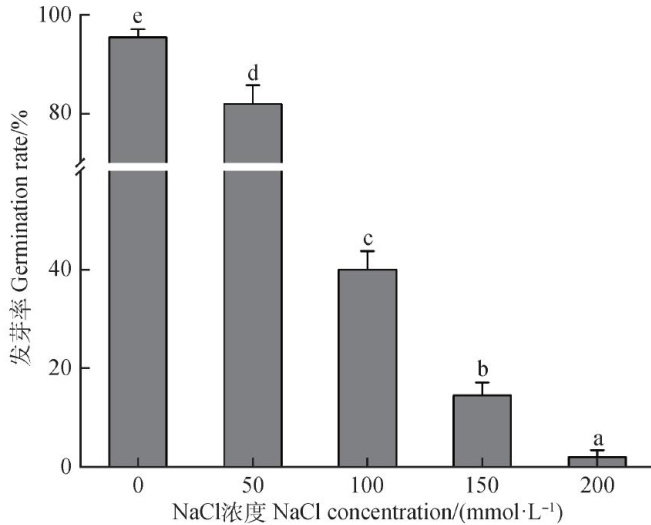 摘要:本研究利用20份不同来源的燕麦(Auena satiruaL.)种质资源为实验材料,分别在萌发期和苗期进行200mmol·L-1NaCl处理,以蒸馏水作为对照处理,系统地评估了燕麦在萌发期和苗期的耐盐性表现。种子萌发期测定胚芽鲜重、胚根鲜重、胚芽干重、胚根干重、胚芽长、胚根长、根数;苗期测定形态指标,包括茎叶鲜重、根鲜重、茎叶干重、根干重、茎叶长、根长、根数,并且在苗期测定多项生理指标,包括丙二醛、超氧化物歧化酶、过氧化氢酶、过氧化物酶、脯氨酸、可溶性糖。结果表明:20份种质材料在 200mmol?L-1NaCl 处理下,萌发期及其苗期的形态指标均有不同程度下降,各材料生理指标也均有上升或者下降趋势。主成分分析表明,胚根鲜重、胚根长、胚芽长可作为燕麦萌发期耐盐性评价的综合鉴定指标,根干重、根鲜重、丙二醛、超氧化物歧化酶、过氧化氢酶、过氧化物酶、脯氨酸、可溶性糖可作为燕麦苗期耐盐性评价的综合鉴定指标。基于综合评价D值,筛选出耐盐材料 k200 和k155;敏盐材料k13和k55。该研究通过燕麦萌发期和苗期耐盐性的综合评价分析,为选育饲用燕麦耐盐新品种、改进耐盐评价方法提供了理论依据和基础材料。