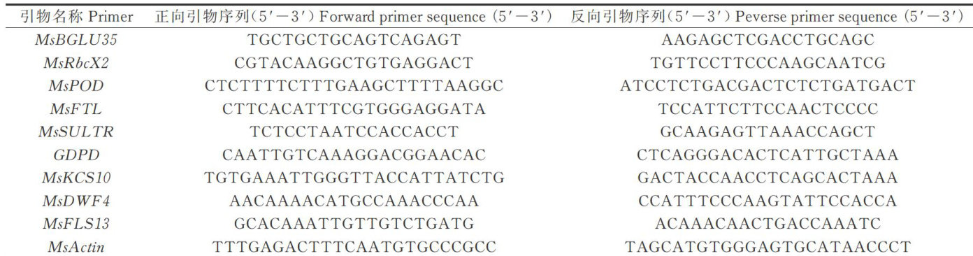 摘要:为研究 MgSO4 胁迫对紫花苜蓿(Medicago satiuaL.)生理响应和基因表达的影响,本研究以紫花苜蓿‘中苜1号为供试材料,利用水培法,设置6个浓度(0,40,80,120,160和 200mmol?L-1)MgSO 4模拟盐胁迫处理,测定紫花首蓿种子萌发指标、幼苗生长及生理指标和耐盐相关基因的表达量。结果表明:随着 MgSO4 浓度升高,紫花苜蓿种子萌发和幼苗生长受到抑制;幼苗内叶绿素、脯氨酸、可溶性蛋白、可溶性糖、丙二醛含量和超氧化歧化酶活性呈上升趋势;根冠比、过氧化物酶和过氧化氢酶活性呈先上升后下降趋势;通过分析紫花苜蓿耐盐相关基因表达量变化发现,与酶活、光合作用、黄酮醇合成、蜡质合成和油菜素内酯合成途径相关的基因在‘中苜1号'紫花苜蓿幼苗耐MgSO4 胁迫中可能发挥重要作用。综上,中首1号'紫花苜蓿具有在 MgSO4 含量小于等于 200mmol?L-1,pH 值小于9的盐碱地上种植的潜力。