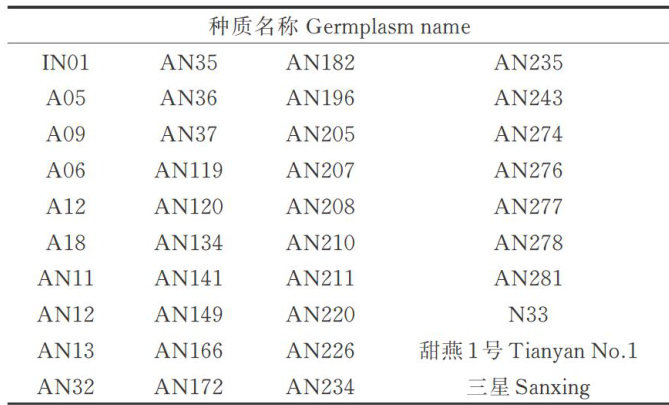 摘要:萌发期是植物生命周期的初始阶段,种子的发芽能力和活力决定了植物的形态建成,为了解不同燕麦(AuenasatiuaL.)种质资源的耐盐程度,筛选得到耐盐性材料,从而为培育燕麦耐盐新品种奠定基础。本研究分别用0mmol?L-1 50mmol?L-1 100mmol?L-1 和 150mmol?L-1 浓度的NaCI溶液对4O份燕麦种质资源进行盐胁迫处理,并测定其发芽率、发芽势、发芽指数、种子活力指数、根长、芽长;采用主成分分析、隶属函数和聚类分析对参试材料的耐盐性进行综合评价。结果表明:40份燕麦种质的发芽率和发芽势、发芽指数和种子活力指数均随盐浓度的增加呈降低趋势,根据耐盐性综合评价值对40份燕麦进行聚类分析,划分为4个类别,初步筛选出极度耐盐材料1份,耐盐材料4份,敏盐材料10份,极度敏盐材料25份。极度耐盐品种‘AN220'在 50~150mmol?L-1I NaCl浓度下表现出较强的耐盐性,极度敏盐群体种质在 50mmol?L-1NaCl 浓度下种子萌发受抑制明显。