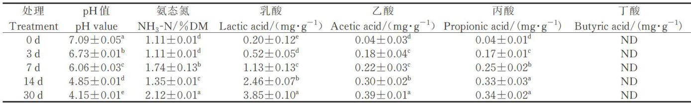 摘要:试验旨在研究陇中华家岭二阴区燕麦青贮发酵品质及细菌群落动态变化,为燕麦高品质青贮利用提供依据。以乳熟期燕麦全株为原料进行真空青贮,自然气温 Δ6~12°C) 下发酵,在发酵第 3d,7d,14d,30d 开袋取样,测定并分析营养成分、发酵品质及细菌群落特征。结果表明,随着发酵时间的延长,可溶性碳水化合物在青贮30d较Od降低了 55.52% ;中性洗涤纤维和酸性洗涤纤维含量在青贮7~30d显著下降 (P<0.05) ,青贮30d时较0d分别降低了 10.25% 和6. 23% ;pH值下降至4.15;乳酸、乙酸及丙酸含量显著增加 (P<0.05) ,丁酸含量在各样品中均未检测到。随着发酵时间的延长,细菌群落物种丰富度先增加后减少,优势菌门由变形菌门(Proteobacteria)和蓝细菌门(Cyanobacteria)演变为厚壁菌门(Firmicutes),优势菌属由罗森伯氏菌属(Rosenbergiella)、泛菌属(Pantoea)等演变为植物乳杆菌属(Lactiplantibacillus),且青贮7d时,植物乳杆菌属成为优势菌属,平均占总属类的 44.78% ,青贮14d时的细菌丰富度达到高峰。植物乳杆菌属、促生乳杆菌属(Leuilactobacillus)等有益微生物是影响燕麦青贮品质的核心微生物组分,显著影响营养成分和发酵指标。