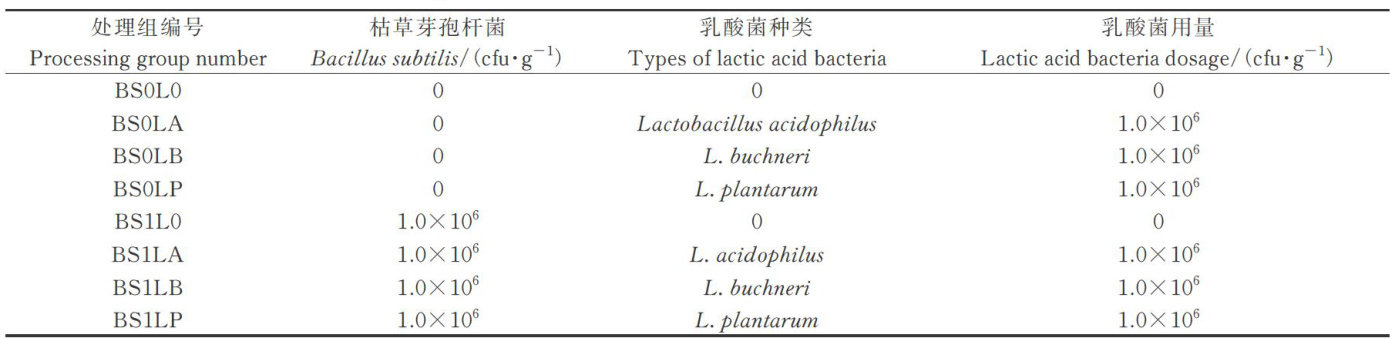 摘要:为探究微生物复配添加提升五节芒(Miscabthus floridulus)青贮品质的方法,本试验设计枯草芽孢杆菌(Bacillus subtilis)(添加或不添加,2个水平)与不同发酵类型的乳酸菌[嗜酸乳杆菌(Lactobacilus acidophilus)、布氏乳杆菌(L.buchneri)、植物乳杆菌 (L .plantarum)以及不添加乳酸菌的空白处理组,4个水平]复配进行 2×4 双因素完全随机青贮添加剂试验。青贮45d后,检测青贮饲料各指标并进行双因素方差分析。结果发现:添加枯草芽孢杆菌极显著影响五节芒青贮饲料的乳酸含量 Ω,pH 值、氨态氮:总氮、粗纤维、中性洗涤纤维、酸性洗涤纤维、半纤维素和粗蛋白含量( ?P<0.01) ,显著影响纤维素、粗脂肪、粗灰分含量和干物质损失率( ?P<0.05) ;不同类型乳酸菌除了不影响粗脂肪和丙酸含量外,对其他指标均有极显著影响( P<0.01) ;二者互作对五节芒的主要发酵品质、纤维品质和营养品质均有极显著影响 (P<0.01) 。除BSOLP组(仅添加植物乳杆菌处理组)有氧稳定时间是 113h ,其他处理组均超过 240h, 。灰色关联度分析法对8个处理组进行综合排序发现,枯草芽孢杆菌与植物乳杆菌复配对提高五节芒青贮品质效果最优;布氏乳杆菌单独使用或与枯草芽孢杆菌复配效果均欠佳。