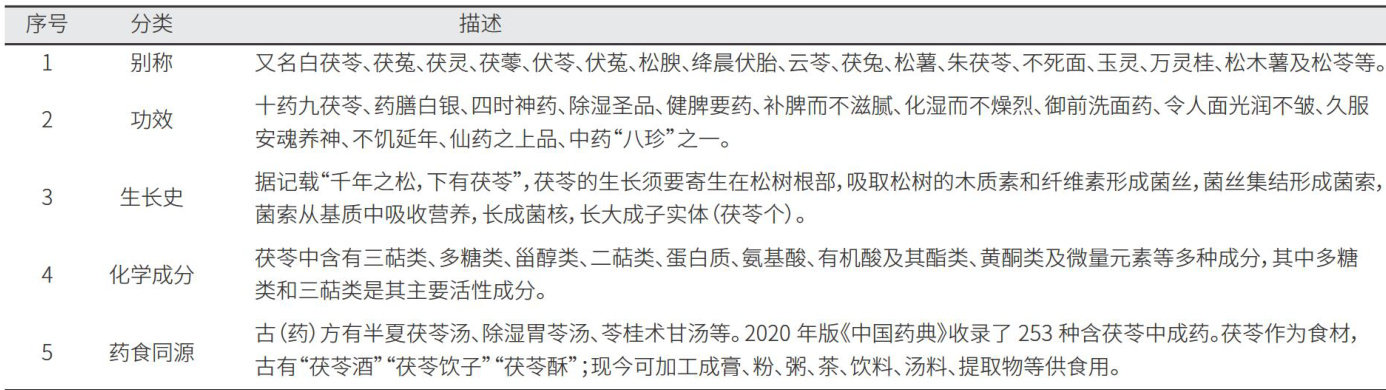 茯苓隶属真菌界担子菌门多孔菌目多孔菌科茯苓属,为大型真菌。其药用历史有两千多年,最早记载于《五十二病方》,写作“服零”,后收录于《神农本草经》,记为“伏苓”,是一味补肾、益脾、安神的中药,具有利水渗湿、和胃健脾、宁心安神等功效。 张伯礼院士强调:“品质就是中药材的生命,品质一旦出问题,中药材产业的生命就没有了保障。”茯苓作为常用的大宗药材之一,临床应用和保健用途广泛,市场需求量大,人们对其品