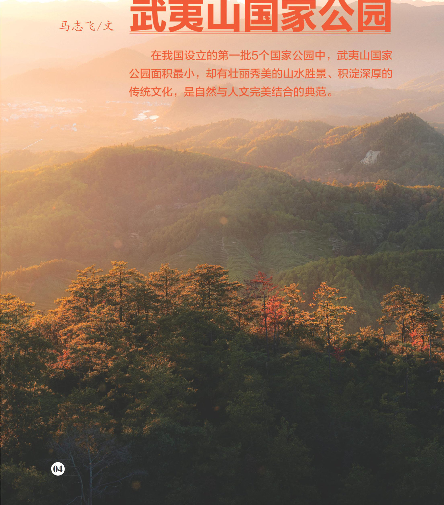 武夷山国家公园概况 武夷山国家公园地处闽赣交界武夷山脉北段,总面积1280平方千米。这里属中亚热带季风气候,森林覆盖率高达94.6%,拥有同纬度保存最完整、最典型、面积最大的中亚热带森林生态系统,孕育了3400多种高等植物与760多种野生脊椎动物,是世界著名的生物模式标本产地,堪称“北纬27°的生命绿洲 武夷山国家公园以典型的丹霞地貌著称。著名的大王峰和玉女峰就位于这里,二者都是单斜柱