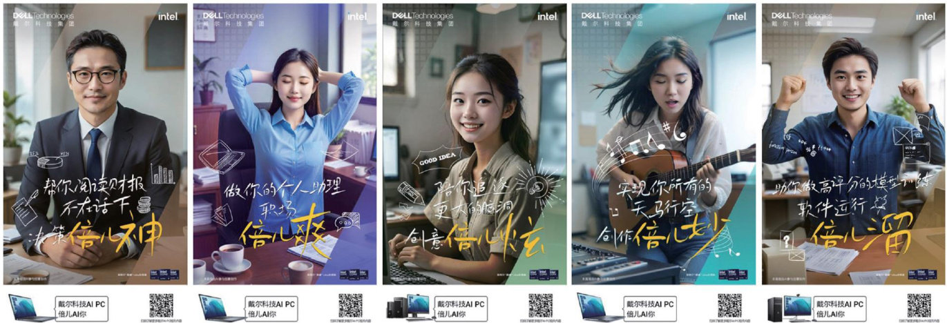 项目简述: 在2024年,随着AIPC市场的兴起,戴尔科技集团推出了新一代AIPC产品,旨在通过个性化和高效的AI体验满足用户需求。为了提升市场关注度和用户体验,我们策划并执行了一项以“戴尔科技AIPC倍儿爱你”为主题的营销项目。项目的核心在于利用AIGC技术创作多样化的内容,包括场景海报、音乐和视频,直观展现AIPC在个人助理、办公协作、创意、深度创作和开发等五大使用场景下的应用效果。