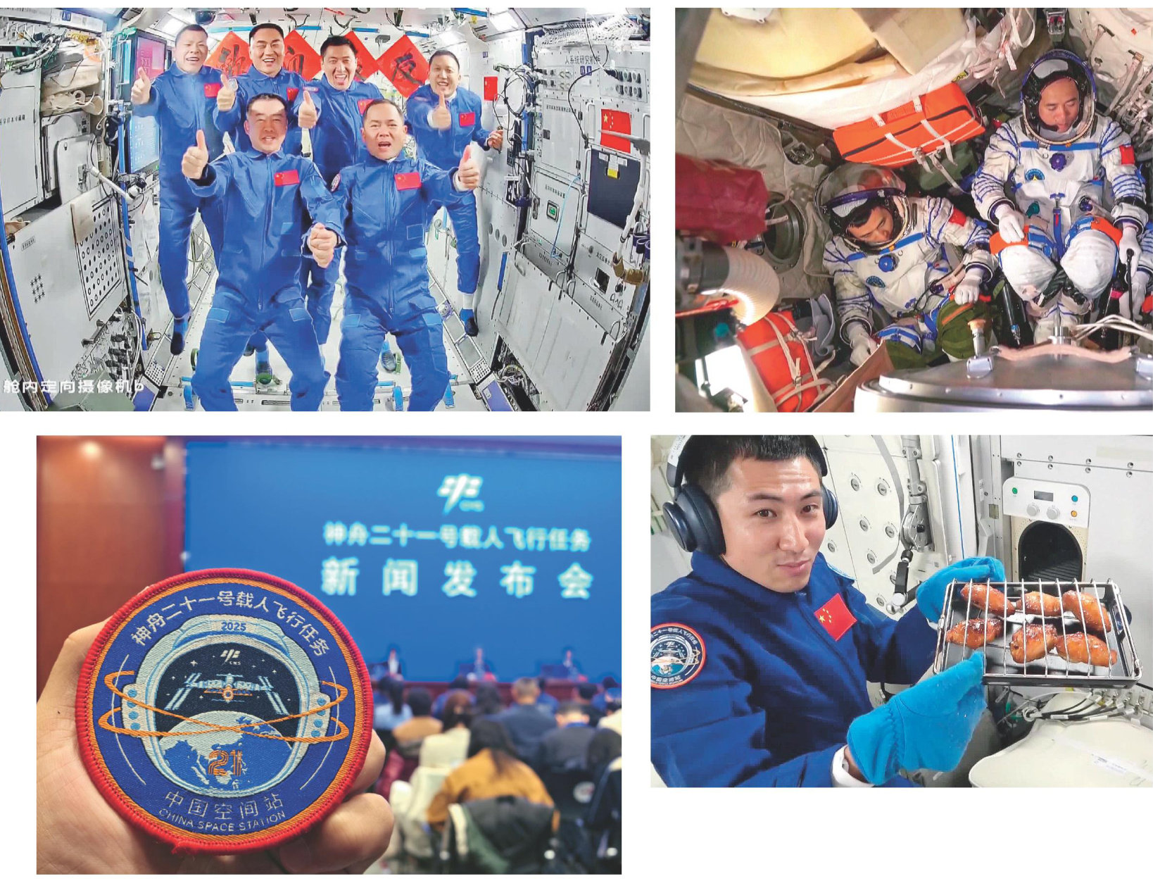 1.神舟二十一号航天员乘组顺利进驻“天宫”,中国航天员完成第7次“太空会师”。 2.神舟二十一号航天员乘组训练画面。 3.2025年10月30日,神舟二十一号载人飞行任务新闻发布会在酒泉卫星发射中心举行。 4.载入史册的“真香”现场!神舟二十一号载人飞船给中国空间站带去了硬核装备——太空烤箱,直接把人间烟火搬上了星辰大海。 5.神舟二十一号载人飞船发射取得圆满成功。