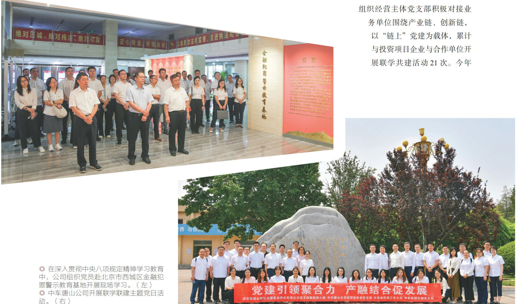 习近平总书记指出:“坚持党对金融工作的集中统一领导,是金融事业健康发展的根本保证。”中车资本控股有限公司作为旗下的产业金融企业,肩负着中车集团资本平台和金融服务平台,立足服务中车实体企业的发展定位。公司践行“引入资金、孵化产业、拓展市场”的任务,以创新服务推动产融结合新突破,坚持党的领导,“把方向、管大局、保落实”;依托政治引领,“强思想、聚合力、促执行”;发挥组织优势,“树标杆、当典范、做表率”