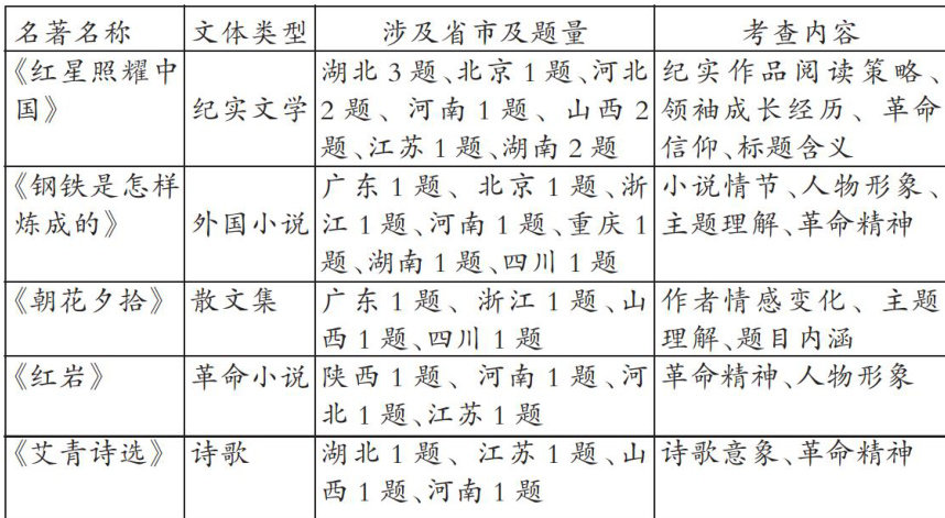 摘要:综观2025年“整本书阅读”中考命题,命题正实现从零散知识考查向核心素养立意、从单一理解向整合运用与高阶思维培养的双重转变,其发展脉络清晰可见:命题结构上,呈现独立板块、融合应用、整合阅读三类模式,凸显了“整体性”考查的核心转向;考查内容上,聚焦文体特质、阅读价值及核心阅读策略的运用;命题形式上,简答论述为主,选择填空锐减,比较分析与情境任务显著增加,推动理解性、批判性与迁移性阅读能力的考查。上述趋势启示命题者与教师,未来需进一步重视整合考查、关注阅读策略、强化高阶思维,以研制更具效度的试题,深化教学改革。