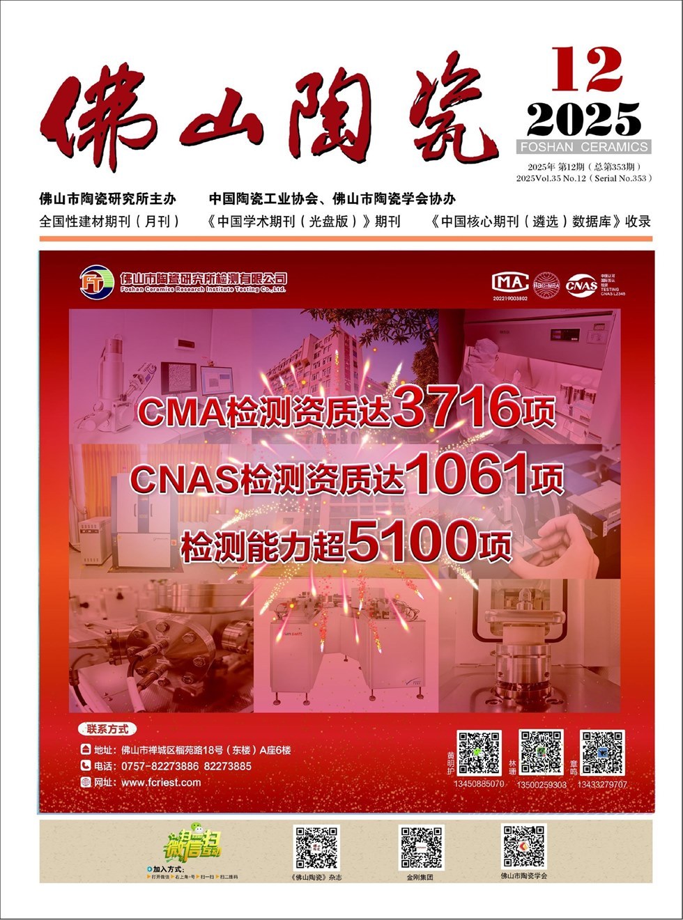 《佛山陶瓷》是全国性建材期刊及中国学术期刊及中国学术期刊(光盘版)期刊,由广东佛陶集团股份有限公司佛山市陶瓷研究所主办,中国陶瓷工业协会协办,是全国最早以月刊出版及广东省唯一国内外公开发行的陶瓷专业杂志。
