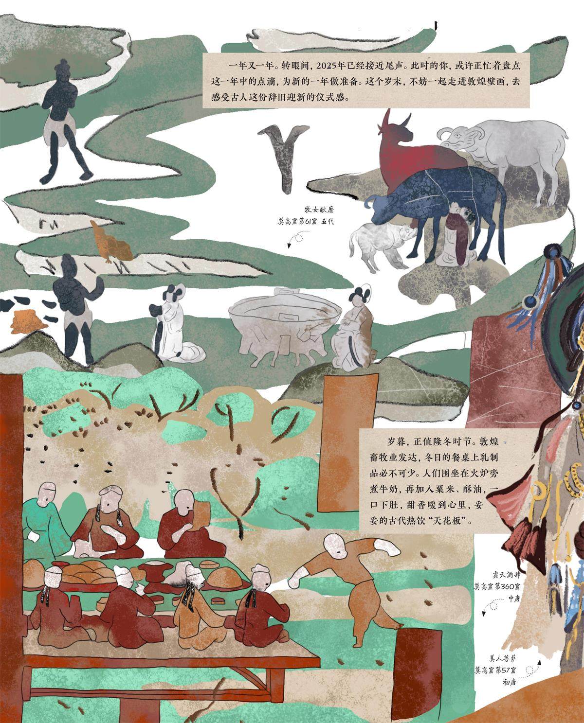 一年又一年。转眼间,2025年已经接近尾声。此时的你,或许正忙着盘点这一年中的点滴,为新的一年做准备。这个岁末,不妨一起走进敦煌壁画,去感受古人这份辞旧迎新的仪式感。