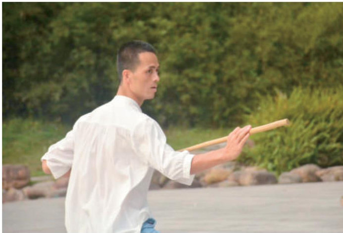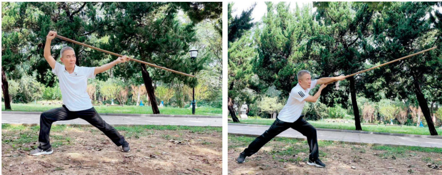一、武式太极十三杆(枪)概述 武式太杆十三杆(枪)共13势。它在拳架功夫精熟的基础上,运用意气将崩、挑、合、按、点、刺、劈、、缠、绞、扫、盖、拖等杆法表现出来,其目的是进一步习练身法的协调及对于大杆(大枪)灌注周身内气的要求。它重意念和内气,不重外形,更重要的是训练将体内的内气通过意念及动作搬运到大杆杆身及杆尖上,将个人身体向外拓展,使大杆成为人的身体一部分,武式太极大杆不是练招法外形,而是对身