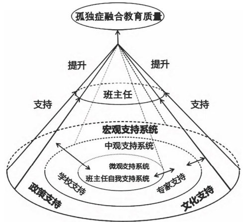 【摘要】基于社会生态系统理论,探讨班主任在孤独症儿童融合教育中的实践困境与专业发展路径,构建“微观一中观一宏观”支持系统模型。研究发现,班主任面临学校课程与专家资源不足、政策支持的筛查机制缺位、社会认知偏差等挑战,需通过动态生成态度、知识技能提升与支持网络构建实现专业成长。基于此,应通过班主任自我赋能、学校协同与政策保障的三维路径支持班主任实现专业发展。