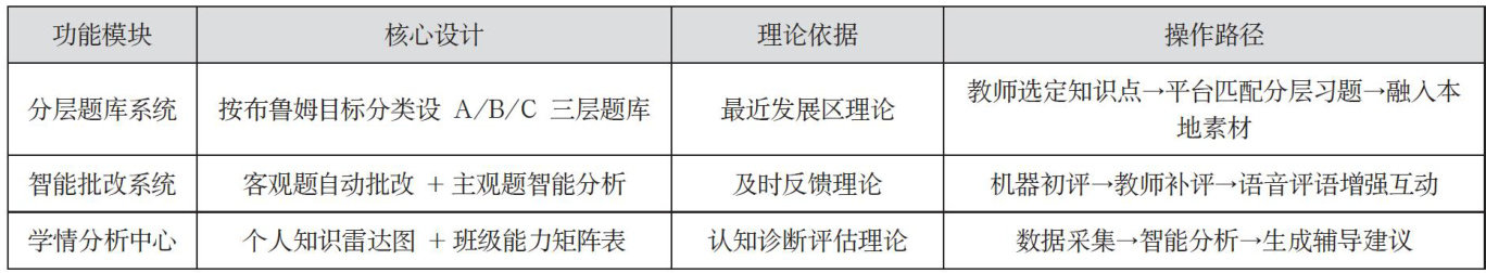摘要:本文结合作者所在学校应用大数据精准教学系统的实践经验,系统阐述了该系统在智能命题、精准分析、作业讲评和学生个性化辅导等环节的具体应用策略与实施效果。实践证明,通过数据驱动的教学模式创新及全流程数据采集与人工智能分析,学校实现了从传统经验型教学向精准化、个性化、高效化教学的转变,从而显著提升了教学质量与学生综合素养。