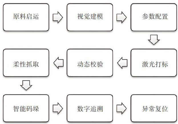 摘要:【目的】针对传统人工打标与码垛效率低、误差大、柔性差等问题,设计了一种基于机器视觉的激光打标与码垛一体化平台。【方法】该系统以模块化理念构建,由伺服传送带、六自由度机械臂、激光打标单元、自主识别与数字追溯模块组成,各单元通过统一总线互联,支持独立维护与在线升级。视觉系统实时捕获工件位姿,驱动激光完成高精度标记后,机械臂依据智能路径规划完成柔性吸取与堆垛。结果】分析结果表明,机械臂在工作状态下,整体位移分布合理,最大位移值处于设计允许范围内,确保了机械臂的稳定性和可靠性。【结论该平台实现了打标与码垛的自动化,可以有效降低人工成本,为制造业智能化升级提供技术支持。
