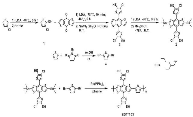 摘要:【目的】太阳能作为绿色可持续能源的高效转化利用是应对全球能源危机的核心路径。本研究旨在解决有机太阳能电池(OSCs)效率较低的问题,通过设计合成一种新型氯代聚合物给体材料BDT-T-CI,以提升光电转换效率。【方法】本研究设计合成了一种新型氯代聚合物给体材料BDT-T-CI,通过引入氯原子调控分子能级与聚集行为,显著提升了材料的光电性能。【结果】通过对其进行结构表征和光电性能测试,实验结果表明,BDT-T-Cl在 362~568nm 具有宽吸收,薄膜态吸收红移为 6~18nm ,分子间的 π-π 堆积增强,其叠加作用在固态中形成了自聚集或有序排列,HOMO能级降至 -5.46eV ,在使用BDT-T-CI给体材料制备光伏器件时,可以得到较高的开路电压。【结论】本研究通过合成一种新型氯代聚合物给体材料BDT-T-CI为高效的OSCs器件提供了新的候选材料。