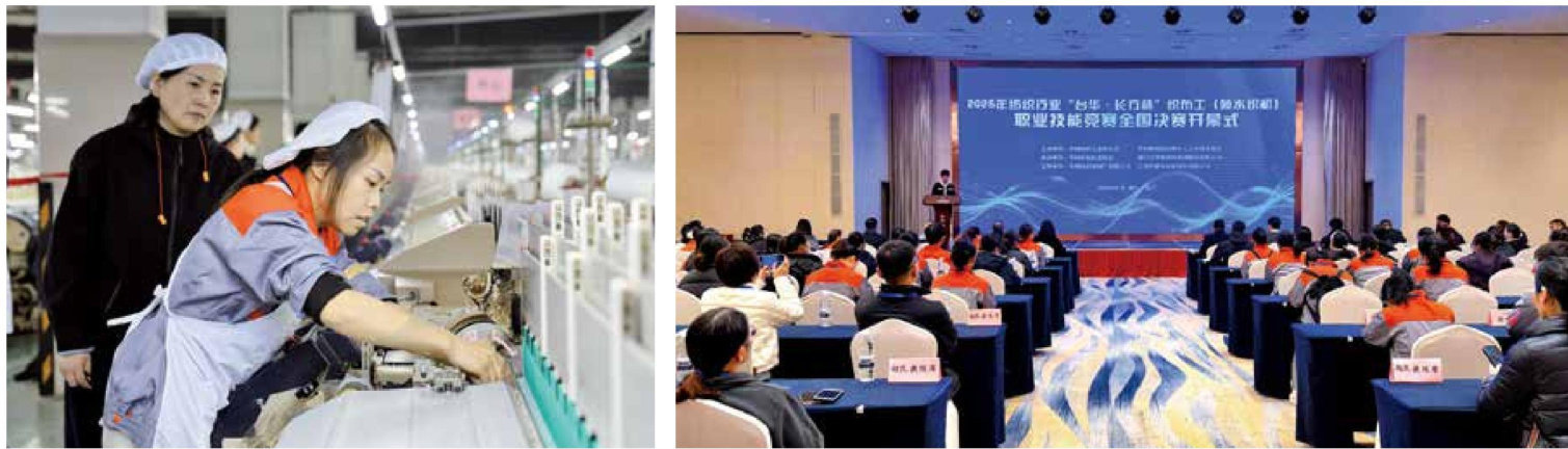 全国决赛开幕式现场。 11月25—27日,2025年纺织行业“台华·长方杯”织布工(喷水织机)职业技能竞赛全国决赛在浙江台华举办,共有来自江苏、浙江、安徽、福建、江西、山东、河南、湖北、四川、贵州10省的59名选手,经过激烈角逐,决赛出总成绩前六名和机下打结单项奖前三名。 中国纺织工业联合会副会长端小平,中国长丝织造协会会长王加毅,董事、总裁沈卫锋,常熟纺织机械厂有限公司销售总监陈立新等领